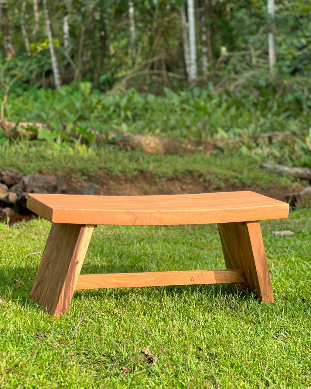 The Monkeypod AngleLeg Bench – 2 Seater is a handcrafted solid wood seating piece designed to combine practical durability with a clean, minimal structural design. Made from premium Monkeypod wood, the bench highlights natural grain patterns and warm timber tones, ensuring each piece carries subtle visual uniqueness. Its flat solid plank seat provides comfortable seating, while the angled wooden legs and central support stretcher enhance stability and strength for everyday use. The smooth matte finish protects the surface while preserving the authentic texture and warmth of the natural wood. With its practical 122 cm length and 41 cm depth, this compact 2-seater bench works perfectly as a dining bench, entryway seat, patio feature, or versatile accent piece in contemporary, rustic, or functional interiors where simple solid wood craftsmanship stands out.