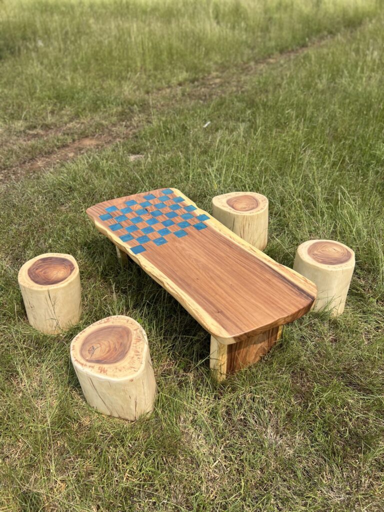 The Live Edge Monkeypod Wood Floor Seating Table is a handcrafted low-height dining table created to highlight the raw beauty of natural wood. Built from premium solid Monkeypod, the slab top preserves organic edges and flowing grain patterns, making every piece unique. Sized at 122 × 92 cm, this table is ideal for floor dining setups, lounge seating arrangements, or relaxed social spaces. The matte finish enhances the natural tone and texture while keeping the surface smooth and practical for daily use. Supported by a strong solid wood base, the table provides dependable stability while maintaining a warm, grounded aesthetic — perfect for homes, villas, cafés, and designer interiors seeking a natural floor-seating concept.