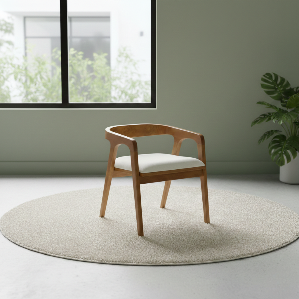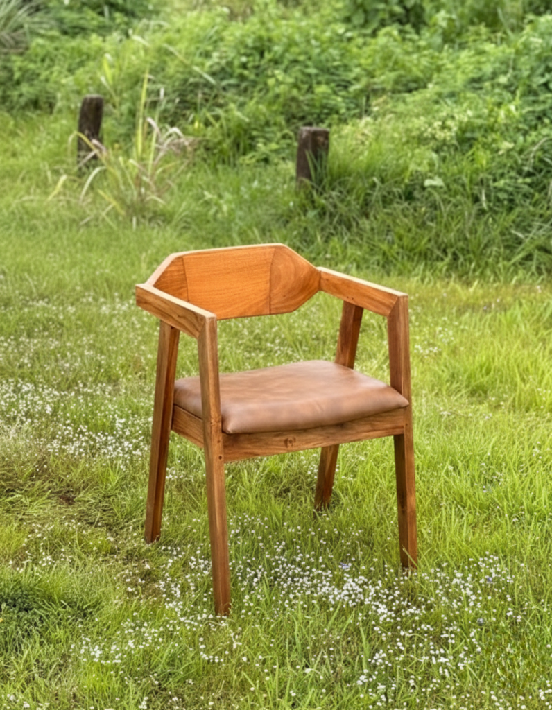 The Teak CaneBack Armchair is a handcrafted solid wood seating piece designed to combine timeless craftsmanship with breathable natural materials. Made from premium Teak wood, the chair showcases rich grain patterns and warm tones, ensuring strength, durability, and subtle uniqueness in every piece. Its woven natural cane backrest adds visual lightness and ventilation while enhancing the chair’s handcrafted character. The structured wooden frame with integrated armrests provides stable support and a balanced architectural profile, while the cushioned seat ensures comfortable everyday use. A smooth matte finish protects the wood and preserves its authentic texture and natural warmth. Built on a sturdy solid wooden structure with a practical 46 × 46 cm seat size, this armchair works perfectly for dining rooms, cafés, studios, or residential interiors where classic cane detailing meets contemporary solid wood design.
