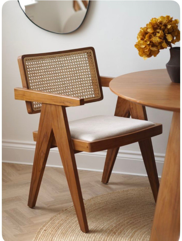 The Teak Flow Armchair is a handcrafted solid wood seating piece designed to combine ergonomic comfort with clean sculptural design. Made from premium Teak wood, the chair highlights rich natural grain patterns and warm tones, ensuring each piece carries subtle uniqueness and long-lasting durability. Its continuous curved arm-back frame creates a smooth flowing silhouette while providing supportive seating and relaxed arm positioning. The cushioned seat enhances comfort for extended use, while the smooth matte finish protects the wood and preserves its natural texture and authentic handcrafted feel. Built on a sturdy solid wooden structure with a practical 46 × 46 cm seat size, this armchair works perfectly for dining spaces, offices, cafés, or modern residential interiors where elegant form and solid wood craftsmanship define the space.