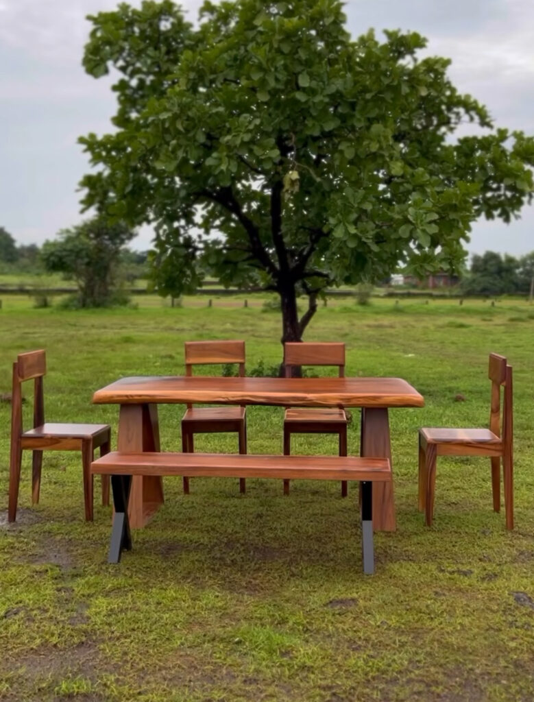Natural finishes showcase the beauty of the wood grain and enhance the organic feel of your home. Opt for finishes that protect the wood without masking its natural charm. Example: A clear, eco-friendly finish on a dining table highlights the unique grain patterns and colors of the wood, creating a focal point in your dining area. - 3. Statement Pieces